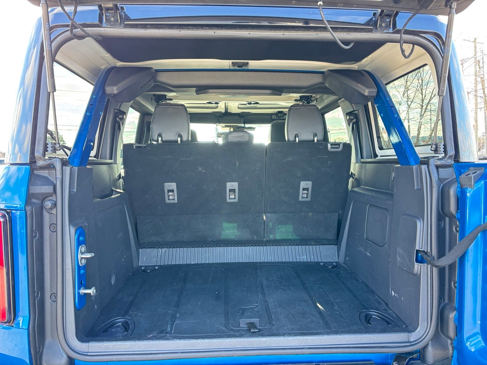 Bluetooth®, Hands Free Phone, Service Records Available, Fully Detailed, We have all of your financing needs covered. Ask us how to get pre-approved today!, Bronco Badlands, MTN VIEW CERTIFIED Certified, 4D Sport Utility, 2.7L EcoBoost V6, 10-Speed Automatic, 4WD, Blue Metallic, Black Onyx Vinyl, 2-Door Intelligent Access w/Lock/Unlock, 4-Wheel Disc Brakes, 4.7 Axle Ratio, 7 Speakers, ABS brakes, Air Conditioning, Alloy wheels, AM/FM radio: SiriusXM with 360L, AM/FM Stereo, Ambient Footwell Lighting, Auto High-Beam Headlamps, Auto High-beam Headlights, Auto-dimming Rear-View mirror, BLIS Blind Spot Information System, Brake assist, Compass, Connected Navigation, Delay-off headlights, Dr & Pass Illuminated Sliding Visor Vanity Mirrors, Driver door bin, Driver vanity mirror, Dual front impact airbags, Dual front side impact airbags, Dual Smart Charging USB Ports, Dual-Zone Electronic Automatic Temperature Control, Electronic Stability Control, Emergency communication system: 911 Assist, Equipment Group 332A Mid Package, Exterior Parking Camera Rear, Front anti-roll bar, Front Bucket Seats, Front Center Armrest, Front fog lights, Front License Plate Bracket, Front reading lights, Front Row Heated Seats, Front wheel independent suspension, Fully automatic headlights, Hard Top Sound Deadening Headliner, Heated door mirrors, Heated front seats, Heated steering wheel, Illuminated entry, Integrated roll-over protection, Internet access capable: FordPass Connect, Lane-Keeping System, Leather Shift Knob, Low tire pressure warning, Marine Grade Vinyl Heated Bucket Seats, Occupant sensing airbag, Outside temperature display, Overhead airbag, Overhead console, Panic alarm, Passenger door bin, Passenger vanity mirror, Power door mirrors, Power Outlet - Back Side of Center Floor Console, Power steering, Power windows, Pre-Collision Assist w/Automatic Emergency Braking, Radio data system, Rear Parking Sensors, Rear-View Camera, Rear-Window Defroster & Washer, Remote keyless entry, Security system, Shadow Black Painted Hard Top, SiriusXM w/360L, Speed control, Split folding rear seat, Steering wheel mounted audio controls, SYNC 4, Tachometer, Telescoping steering wheel, Tilt steering wheel, Traction control, Trip computer, Variably intermittent wipers, Voltmeter, Wheels: 17 Carbonized Gray-Painted Aluminum, Bronco Badlands, 4D Sport Utility, 2.7L EcoBoost V6, 10-Speed Automatic, 4WD, Blue Metallic, Black Onyx Vinyl.